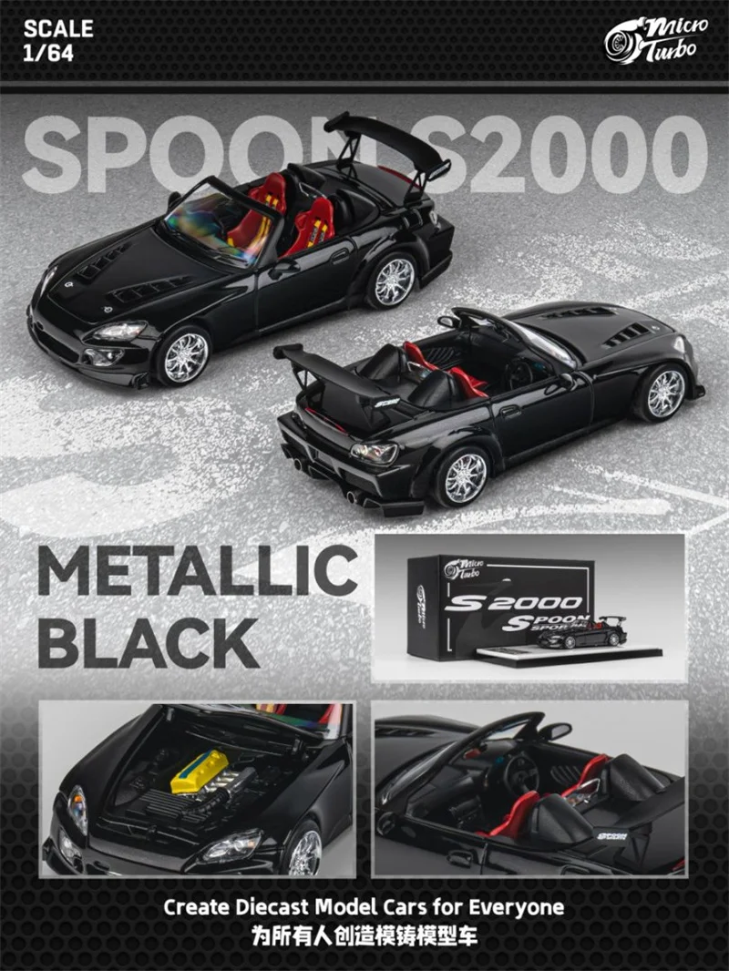 Micro Turbo 1:64 S2000 Spoon Metallic Black limited999 Diecast Model Car